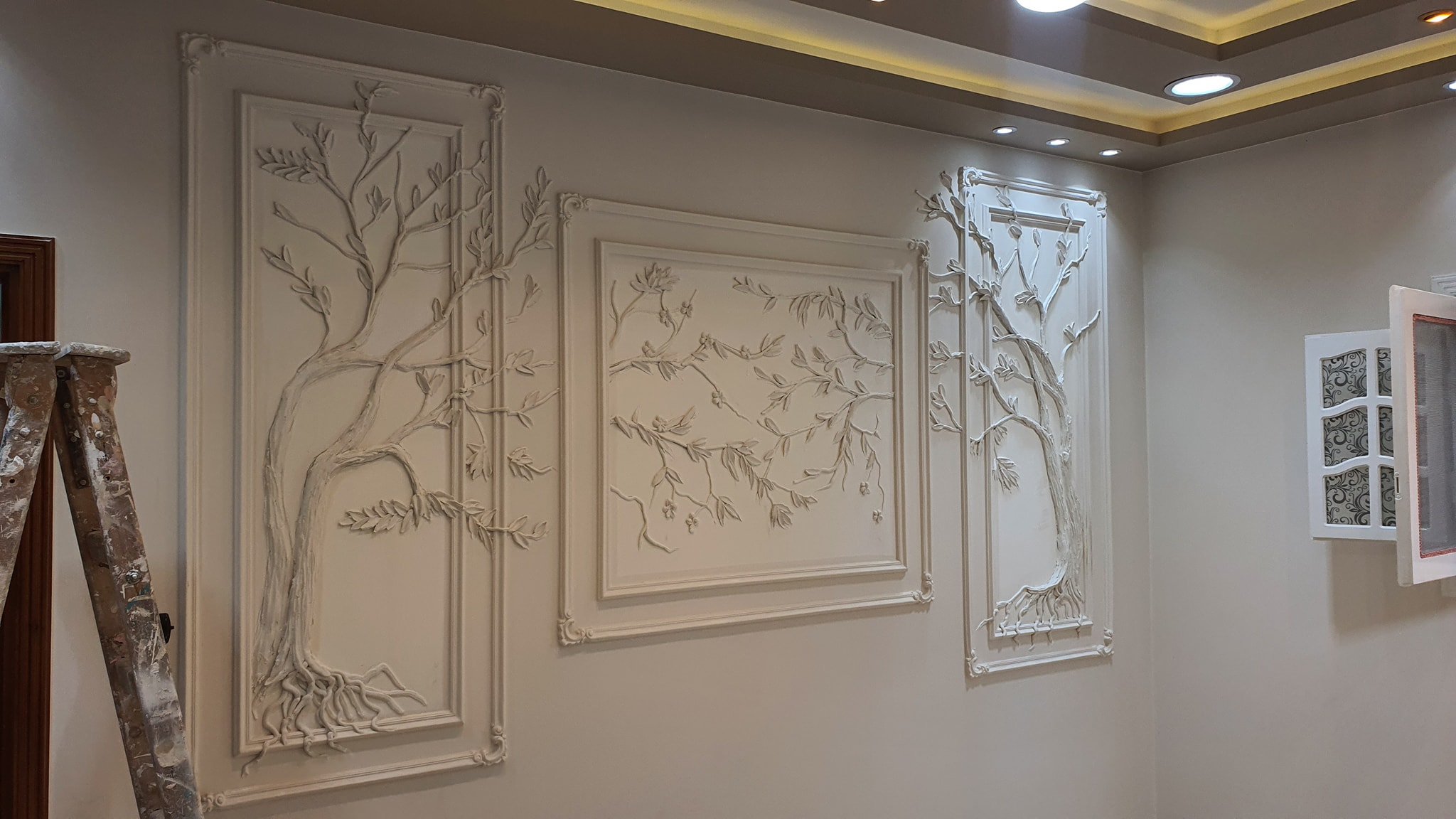تُصنع ديكورات حوائط بارزة مجسمة من جبس معالج بجودة عالية، وبأسعار تناسب جميع الأذواق والميزانيات.